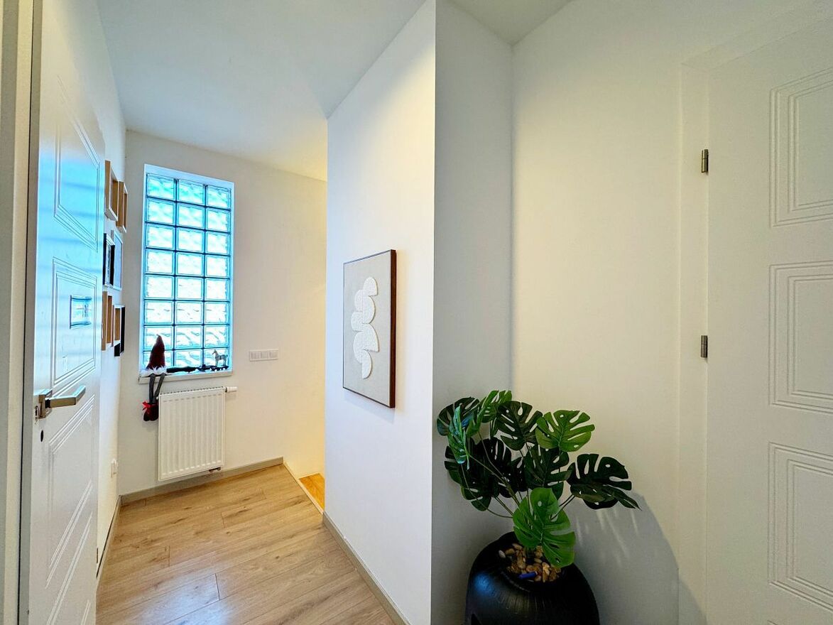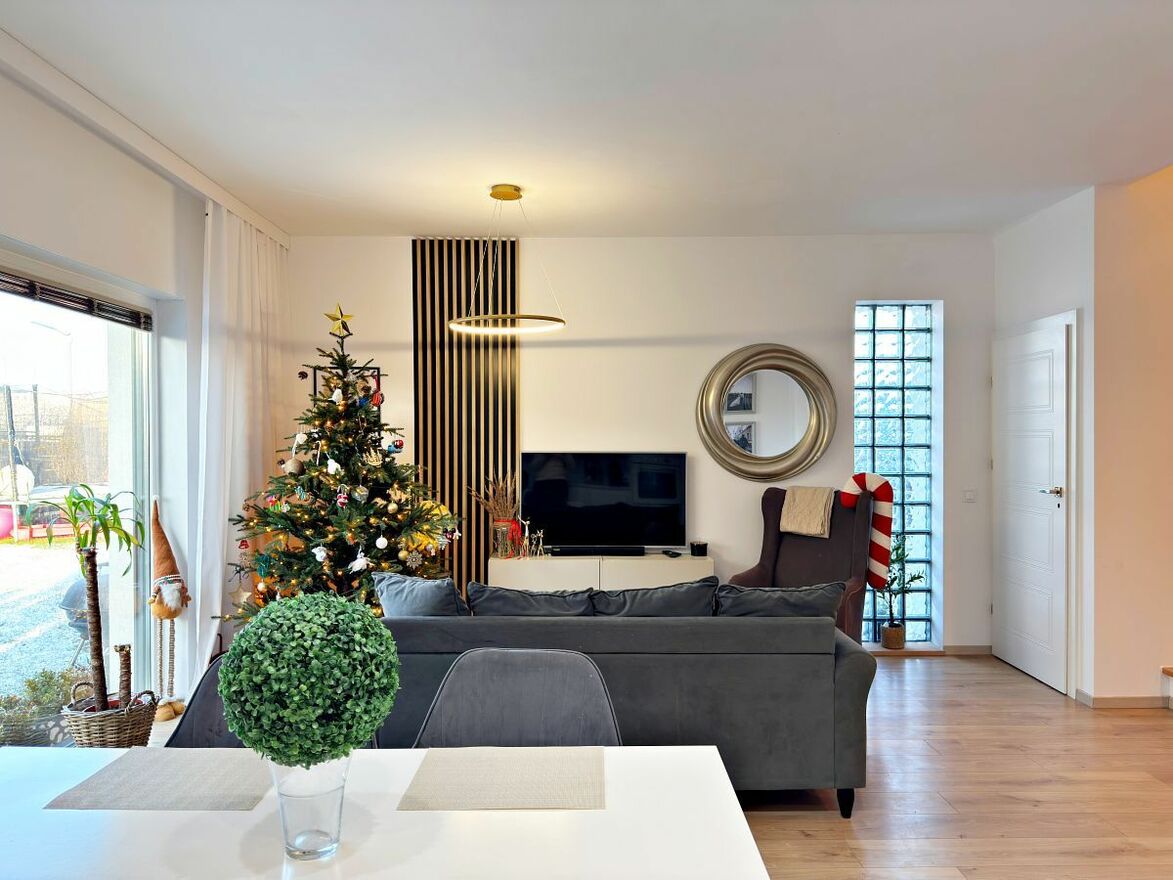 Nieruchomość w dobrym stanie wizualnym oraz technicznym. Podłoga na parterze we wszystkich pomieszczeniach z wyjątkiem łazienki została wyłożona panelami. Podłoga na piętrze w korytarzu oraz 3 sypialniach wyłożona została panelami, a w WC kaflami. W nieruchomości zostały zamontowane okna PCV 3 szybowe oraz na parterze zostały zamontowane rolety zewnętrzne sterowane elektrycznie. Stopnie schodów prowadzące z parteru na piętro zostały wykonane z drewna. Meble kuchenne zostały wykonane na wymiar, by w pełni wykorzystać przeznaczoną pod nią przestrzeń. W zabudowie kuchennej znajdziemy sprzęty: zmywarka 60, piekarnik, mikrofalówka, indukcja, lodówka z zamrażarką, pochłaniacz powietrza. Droga dojazdowa do posesji jest drogą szutrową (ok. 200 m) oraz jest we współudziale. Na strychu zamontowany jest uzdatniacz wody oraz filtry. Sąsiedztwo mieszkaniowe jest miłe i bezkonfliktowe.