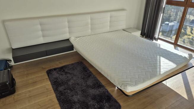 Łóżko przyscienne wym. ok. 200 x 160. Wymana na nowe w apartamencie na wynajem. Eleganckie i wygodne. Pilne. Odbior ...